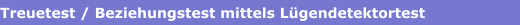 Folglich veranlassen signifikante Veränderungen einer Person gegenüber dem Partner ein Misstrauen, welches zu so einem Lügendetektortest auf Treue führt. Der Polygraph Examiner Leutz nimmt einen solchen Test sehr ernst. Hier wird unter anderem über das Wohl und Wehe zweier Menschen und ihre weitere Beziehung zueinander entschieden. Deshalb werden alle Probleme, Fragen und Sachverhalte auch intensiv und ohne Zeitdruck, untersucht und analysiert. Anzahl der Fragen unbegrenzt, Preis: 800,00 EUR für den Lügendetektortest oder Anzahl der Fragen begrenzt (klassisch) Preis: 650,00 EUR für den Lügentest!